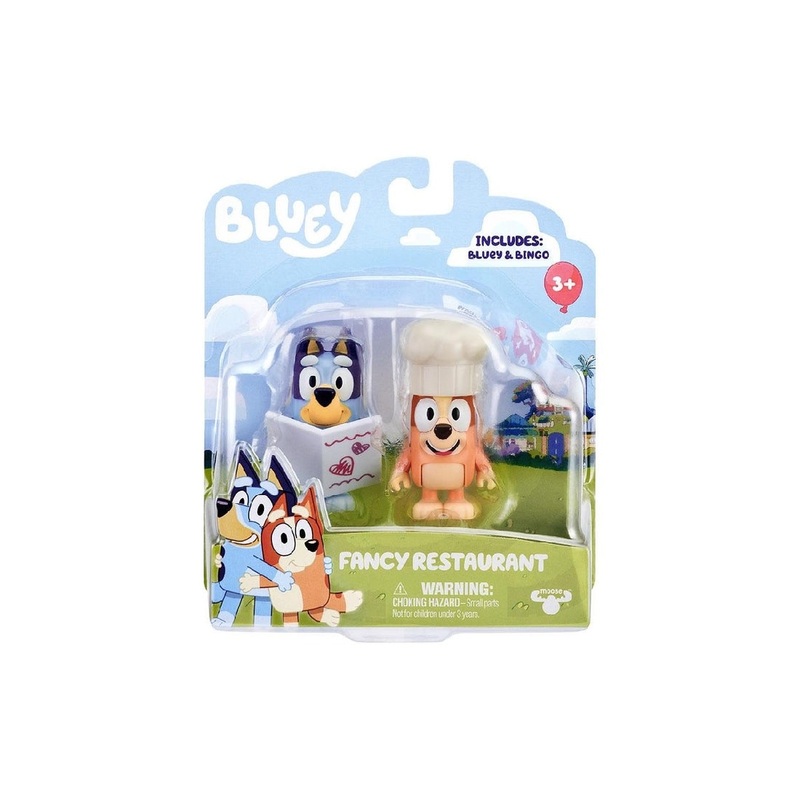 Bluey and Bingo cook up some fun in their Fancy Restaurant. Check out the menu and see what Chef Bingo brings to the table. Children will love recreating Blueys adventures from the Bluey TV show or creating new ones of their own with these fun-filled toys!