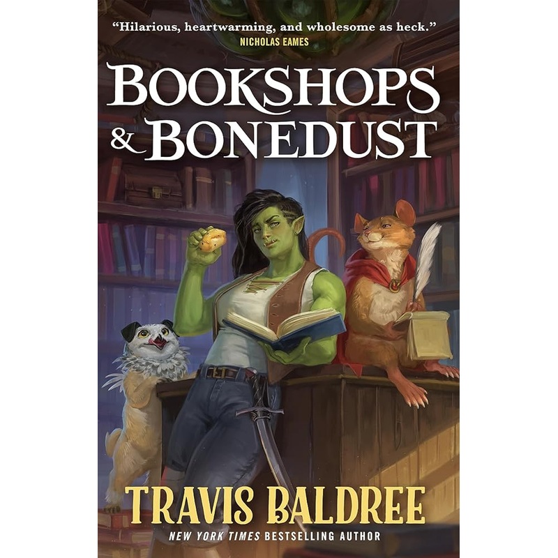 Set in the world of New York Times bestselling Legends & Lattes, Travis Baldree’s Bookshops & Bonedust takes us on a journey of high fantasy, first loves, and secondhand books.