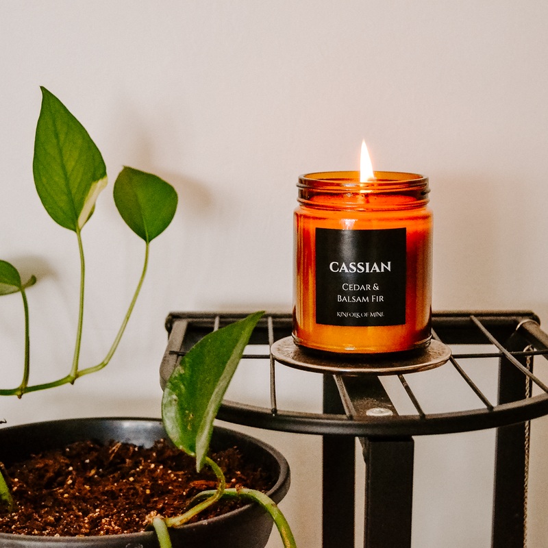 CASSIANSoy Wax CandleCEDAR & BALSAM FIR100% soy wax candle9oz amber glass jar50-60hr burn timeNote Profile:Top: Grapefruit, Orange, Lemon VerbenaMiddle: Fig, Green leavesBase: Patchouli, Moss, CedarwoodWholesale pricing available.Kinfolk of Mine, is a family business! We are thankful for our richly filled lives of stories, laughter, and faith. Our candles are made with 100% soy wax, which means they are natural, clean, burn longer, and are more fragrant. The advantages of Soy Candles are clear – no black soot, a longer burn, and a natural product produced by American farmers.Eco-friendly, renewable, American grown, sustainable, carbon neutral!Lead Free cotton wicks