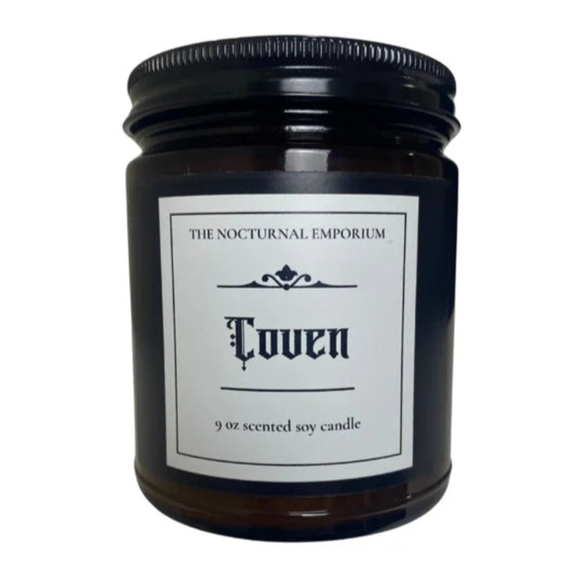 Inspired by high tea with your witches; Coven is characterized with notes of black tea, citrus, lavender and subtle hints of vanilla. The perfect blend of bitter, sweet and floral.9 oz Glass Jar | Crafted in small batches | Lady Grey, Vanilla