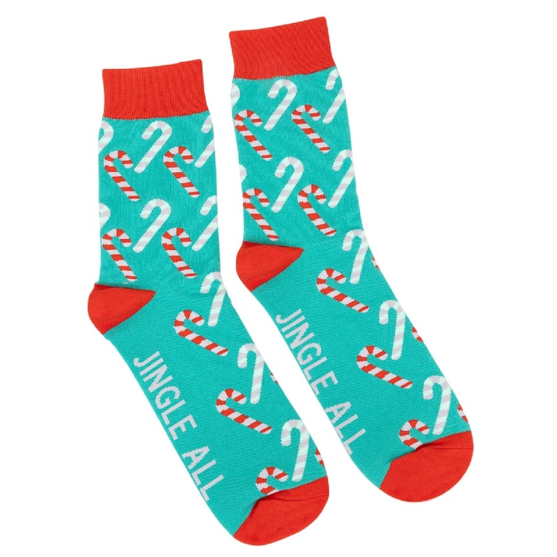 Pair of colourful socks with festive design. Includes an elasticated rib cuff and padded sole.