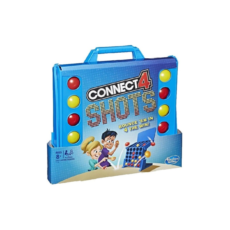 Game Includes : Connect 4 Shots Collapsible Grid, 2 Feet, Backboard, 25 Balls (12 Yellow, 12 Red, 1 Orange) & Instructions