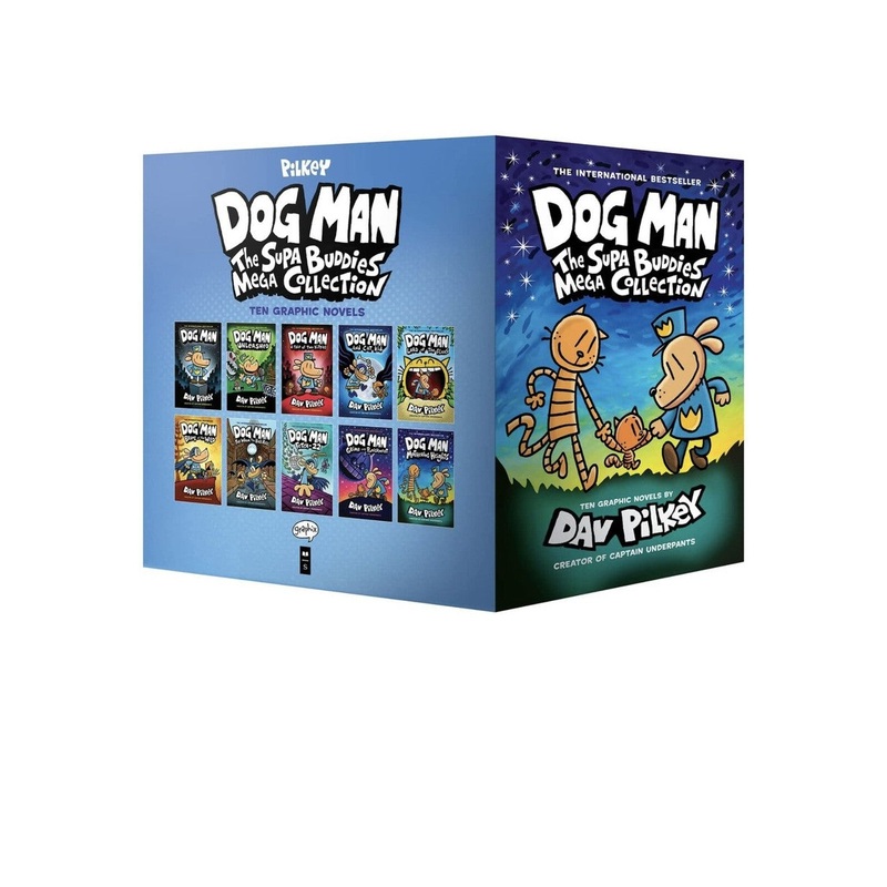 Dog Man: The Supa Buddies Mega Collection (Books 110) by Dav Pilkey is a dynamic box set featuring the first ten installments of the beloved Dog Man graphic novel series. This collection follows the adventures of Dog Man, a half-dog, half-human police offi
