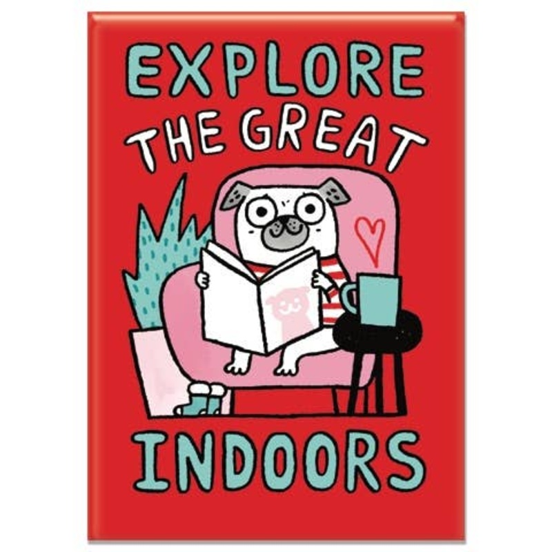 Explore the Great Indoors Rectangle Magnet by Gemma Correll.2.25" x 3.5" size.USA Made with recycled paper & steel.Hand-pressed by Badge Bomb.1% of all sales goes to environmental non-profits.