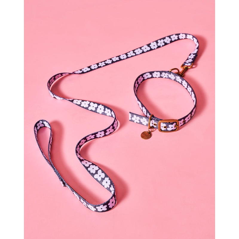 Get those tails wagging for walkies with our fun printed dog leads. Our Flower Face Dog Lead features bold white flowers on a black base. Available in two lengths, pair with our co-ordinating dog collars and match with our dog beds to spoil your pretty pooch.