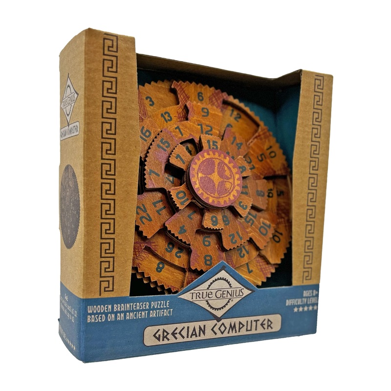 Unlock the secrets of ancient Greek ingenuity with the True Genius Grecian Computer by Project Genius. This beautifully crafted wooden brainteaser is inspired by the Antikythera mechanism, one of history’s earliest analog computers. The challenge is to align the dials so that all 12 columns add up to the number 42, requiring logical thinking and patience. Perfect for puzzle enthusiasts and history buffs alike, this engaging puzzle not only tests your mathematical skills but also serves as an elegant conversation piece. Whether for personal enjoyment or as a thoughtful gift, it offers hours of stimulating entertainment.