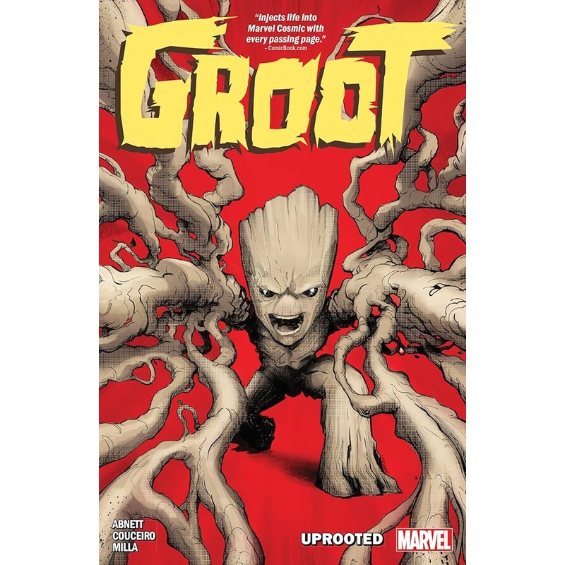 Monster, hero, Guardian: Groot! Before he was a Guardian of the Galaxy – before the Grootfall – young Groot lived a life of tranquility on his serene homeworld, Planet X. But when monstrous invaders attack his world, this courageous sapling must shoulder a heroic destiny! And this destiny will lead Groot to cross paths with a young Kree soldier by the name of Mar-Vell! But who – or what – is behind the devastation of Planet X? Does any life yet stir in its decimated forests? And can Groot and Mar-Vell’s alliance withstand them being stalked by Yondar the hunter? Writer Dan Abnett (GUARDIANS OF THE GALAXY) and artist Damian Couceiro (X-FORCE) reveal never-before-seen moments of Groot’s origin and first adventure through the galaxy! Collecting GROOT (2023) #1-4.
