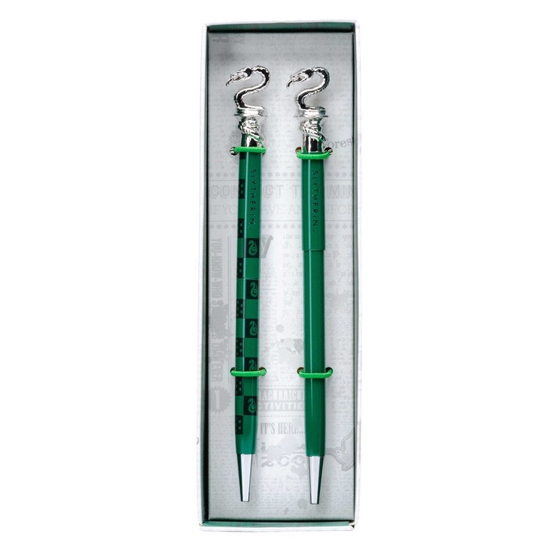Celebrate your love of the WIZARDING WORLD and bring a bit of magic to your writing with this beautiful pen and mechanical pencil set featuring a classic SLYTHERIN design.INCLUDES PEN AND MECHANICAL PENCIL:One of each essential writing instrument that look