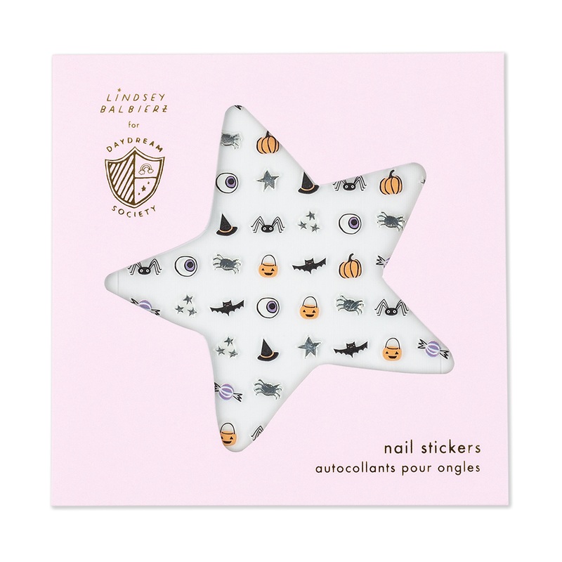 Oh hey, boo! Featuring holographic silver foil details, these halloween ghost nail stickers are seriously spooky! Use them to decorate your nails or as trick-or-treat items. Illustrated by Lindsey BalbierzPack of 1 sheet of 100 nail stickersSafe + non-toxicPackaged in a cardstock envelope