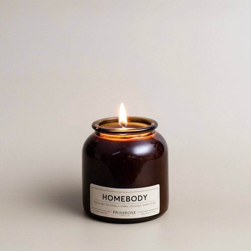Cocoa Butter, Vanilla, Tonka, Coconut, Warm SpicesProviding a cozy and comforting ambiance, Homebody is the perfect warm scent.The complexity of warmspices, rich cocoa butter, olive wood and a touch of coconut sweetness combines to createthe most relaxing fragrance, perfect for those of us who relish cancelled plans and nights in.-7 ounces- soy wax- hand-poured