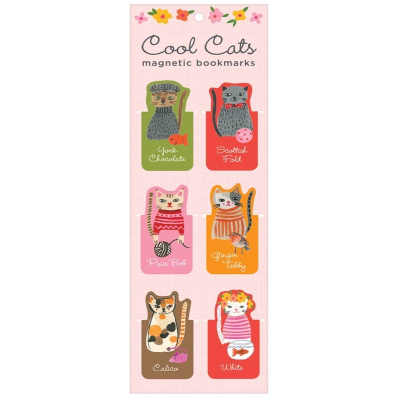 Galison's Cool Cats Magnetic Bookmarks feature a delightful collection of whimsically illustrated feline friends. The six die-cut magnetic clips hold your place and add decoration to any book or magazine page.- 6 die-cut magnetic bookmark clips, 6 designs-
