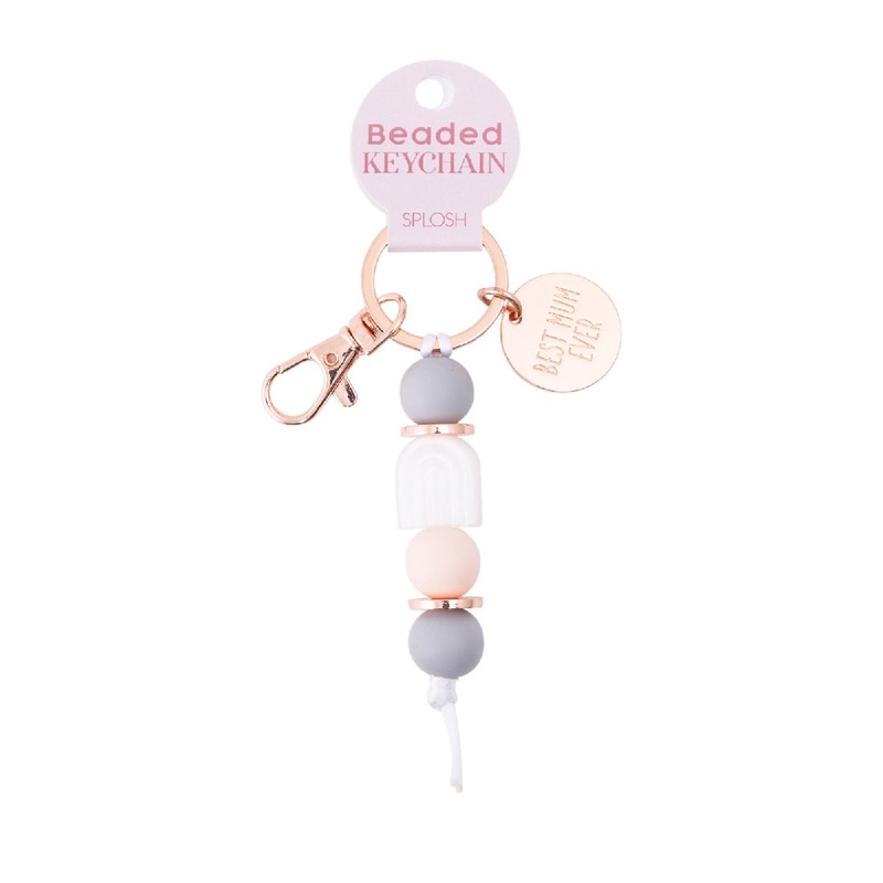 Details: Keyring with stacked multi-coloured silicone beads. Rose gold details with heartfelt quote.