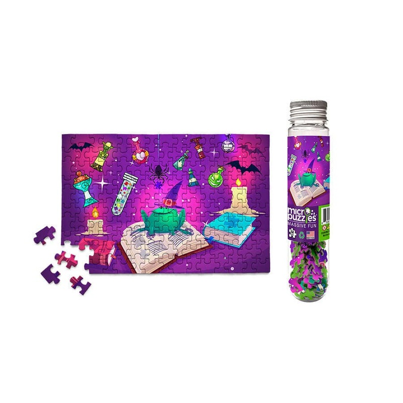 Behold... our magical formula for creating the perfect Halloween MicroPuzzle! Its 52% fun, 37% excitement, 28% alchemy, and just a dash of frogs spit (We're kidding... we kid!). This spellbinding Micro Puzzle stirs up a cauldron of delight, with vibrant co