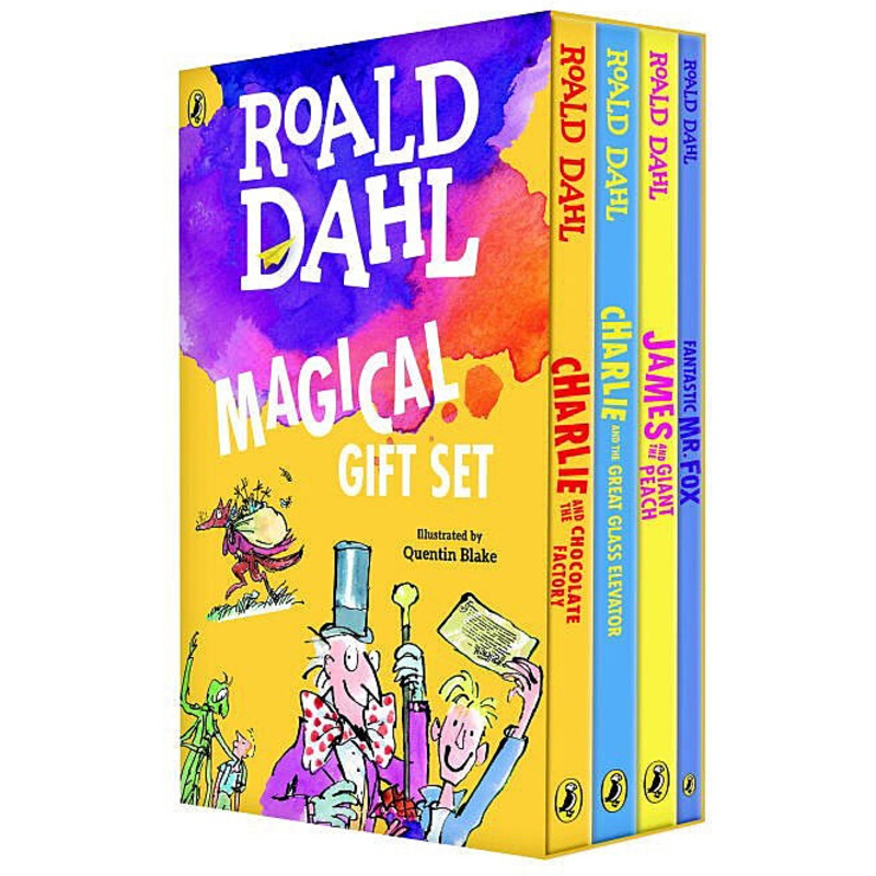 The Roald Dahl Magical Gift Boxed Set (4 Books) features four of Roald Dahl's most beloved classics, each beautifully illustrated by Quentin Blake. This collection includes Charlie and the Chocolate Factory, Charlie and the Great Glass Elevator, James and