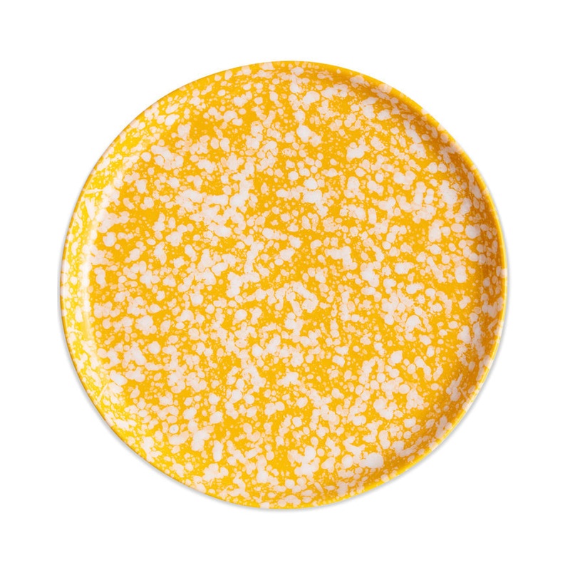 Set the table with our statement hand painted dinner plates, made by master ceramicists Robert Gordon. The Splat Plate 2P Set features a hand painted white splattered pattern on yolk yellow stoneware. Style with our vast range of cutlery, glassware, cerami